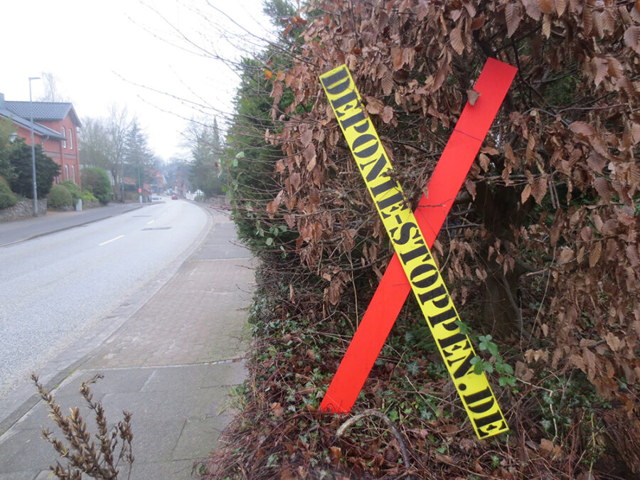 Auf öffentlichen und privaten Flächen sind Plakate und Holzkreuze mit dem Hinweis »Deponie stoppen« installiert worden.