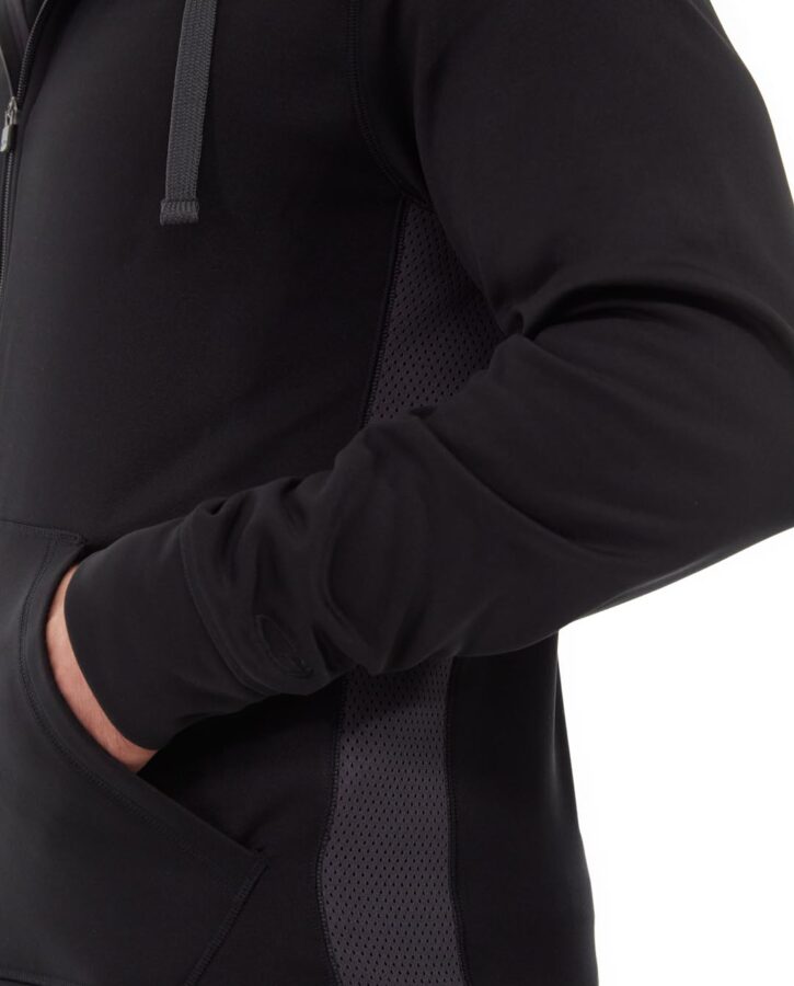 Stay comfortable and stay in the race no matter what the weather’s up to. The Bruno Compete Hoodie’s water-repellent exterior shields you from the elements, while advanced fabric technology inside wicks moisture to keep you dry.