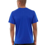 • Royal polyester tee with black accents.